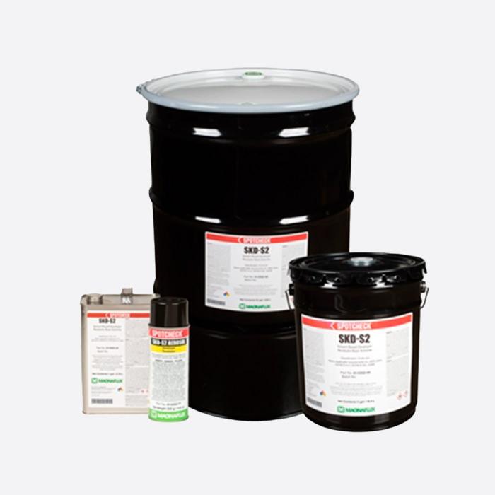 Utilizado en aplicaciones con aleaciones especiales, como el sector nuclear. El revelador base solvente SKD-S2 es no halogenado y está listo para utilizarse. Las partículas de revelado suspendidas en un solvente de secado rápido producen un recubrimiento blanco opaco para un fondo de contraste alrededor de las indicaciones del penetrante. Es ideal para los talleres de maquinados y para las aplicaciones de soldadura en la industria de la construcción.