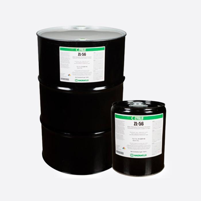 Es un penetrante de ultra alta sensibilidad (nivel 4), el penetrante fluorescente lavable al agua ZL-56 es seguro para utilizarse en aleaciones para aplicaciones de ingeniería y de la industria aeroespacial, tanto como en el aluminio, el acero, el níquel y el titanio. ZL-56 está diseñado para componentes no porosos y con un alto grado de maquinado. Los reveladores recomendados son el polvo ZP-4D, ZP-9F no acuoso, SKD-S2 no acuoso y ZP-5B suspendible en agua..