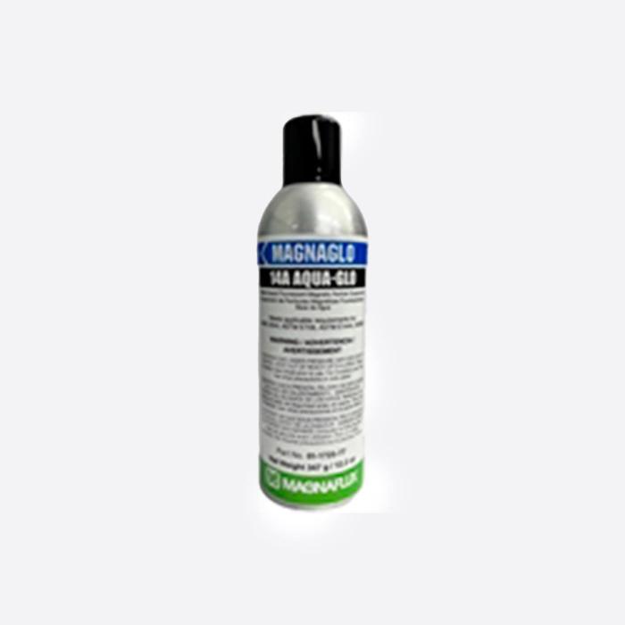 14A Aqua-Glo es un aerosol con suspensión de partículas magnéticas base agua muy sensible que se usa para encontrar discontinuidades muy finas en aplicaciones críticas y en áreas de difícil acceso. 14A Aqua-Glo ofrece los beneficios de un baño de agua y la conveniencia de un aerosol. Es ideal para la inspección de manchas y casos difíciles de procesar, donde el procesamiento por lotes no resultaría práctico.