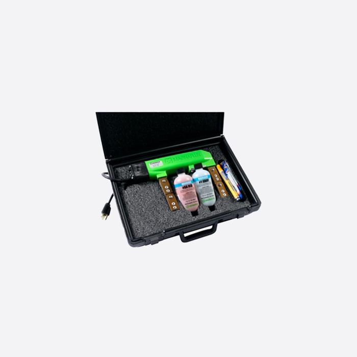 El kit Y-7 MV incluye un yugo CA/CC electromagnético duradero y sólido, polvos magnéticos no fluorescentes para encontrar indicaciones superficiales y subsuperficiales durante los ensayos con partículas magnéticas.