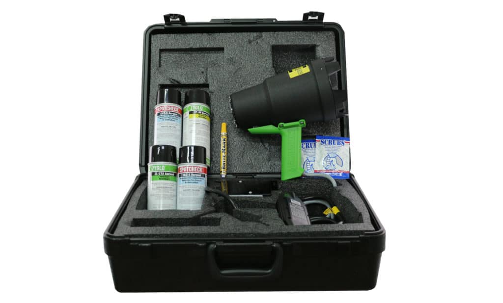 El Kit fluorescente portátil (aerosol) ZA-70 de Zyglo® ofrece una mayor sensibilidad sobre el kit de prueba de tinte rojo visible Spotcheck®.
